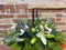 Beautiful Basket Floral Arrangement Including red, white and green Christmas colors. Includes gerberas, carnations, lisianthus and greenery in a basket. A perfect gift or for you to take home or to send to someone for the holidays.