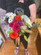 Introducing an exquisite pairing that's simply irresistible – our "Perfect Duo" package! This special offer includes a luxurious Candle from Willow and Roots Apothecary, elegantly topped with a stunning floral centrepiece. The floral arrangement boasts a beautiful selection of roses, Gerberas, daisies, and complementary filler flowers.